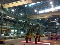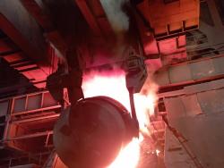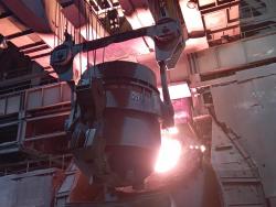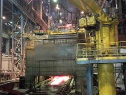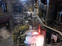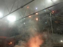 Полученный раскаленный до 1400 градусов жидкий чугун поступает в следующий, конверторный цех, где мы увидим процесс рождения стали.